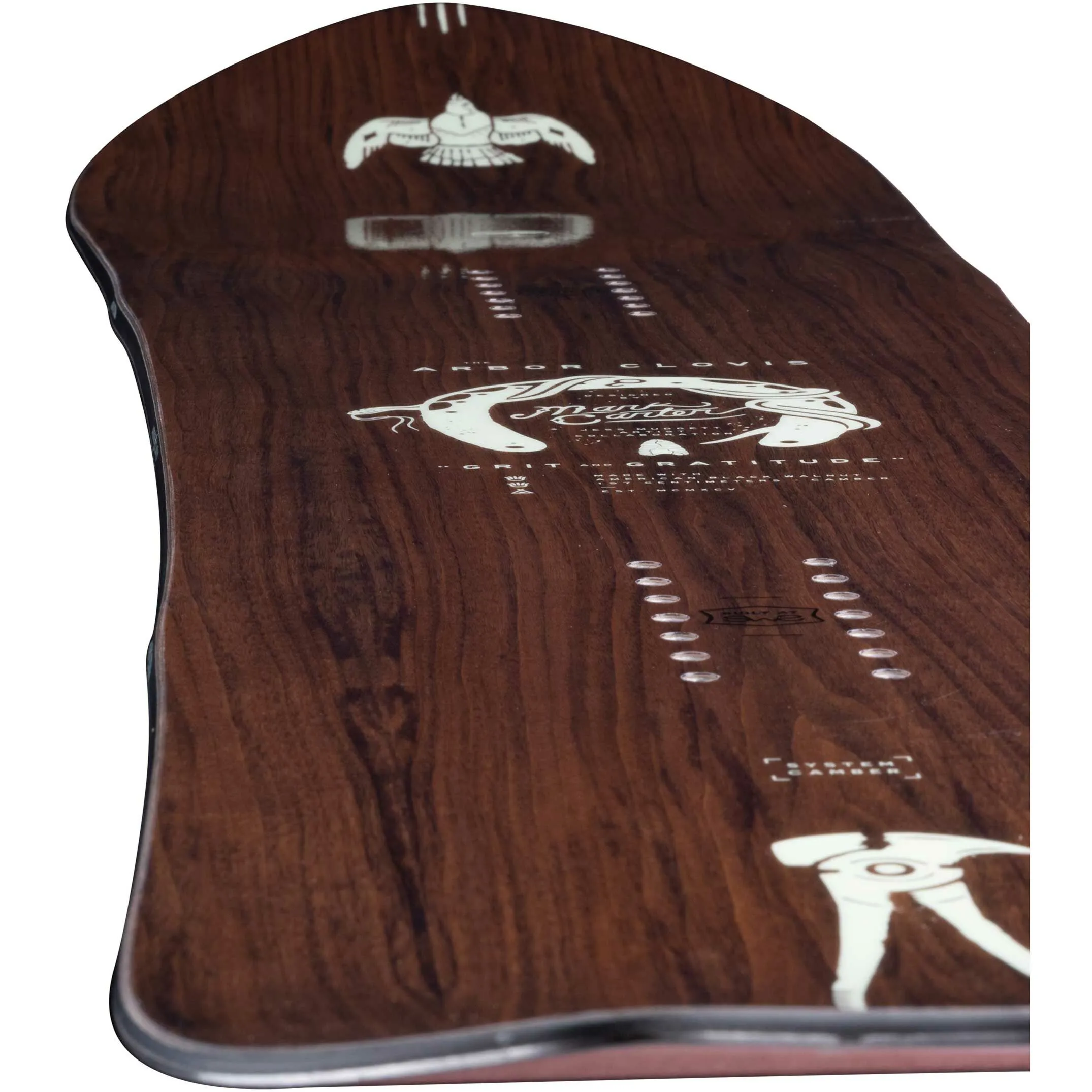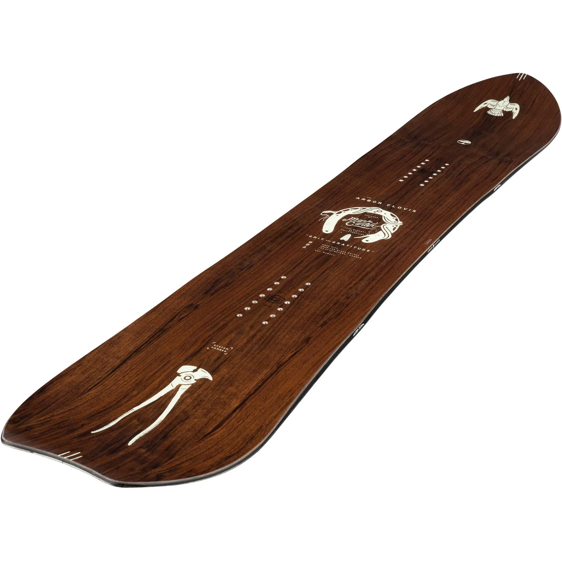 Le Arbor Clovis est le carver rapide de la collection Arbor. Un cône robuste combiné à un tail court donne au Clovis une maniabilité extrême dans la neige profonde. Le cadre en carbone A donne à la planche une réponse et une rigidité sans précédent. Une planche idéale pour les adeptes de la vitesse.