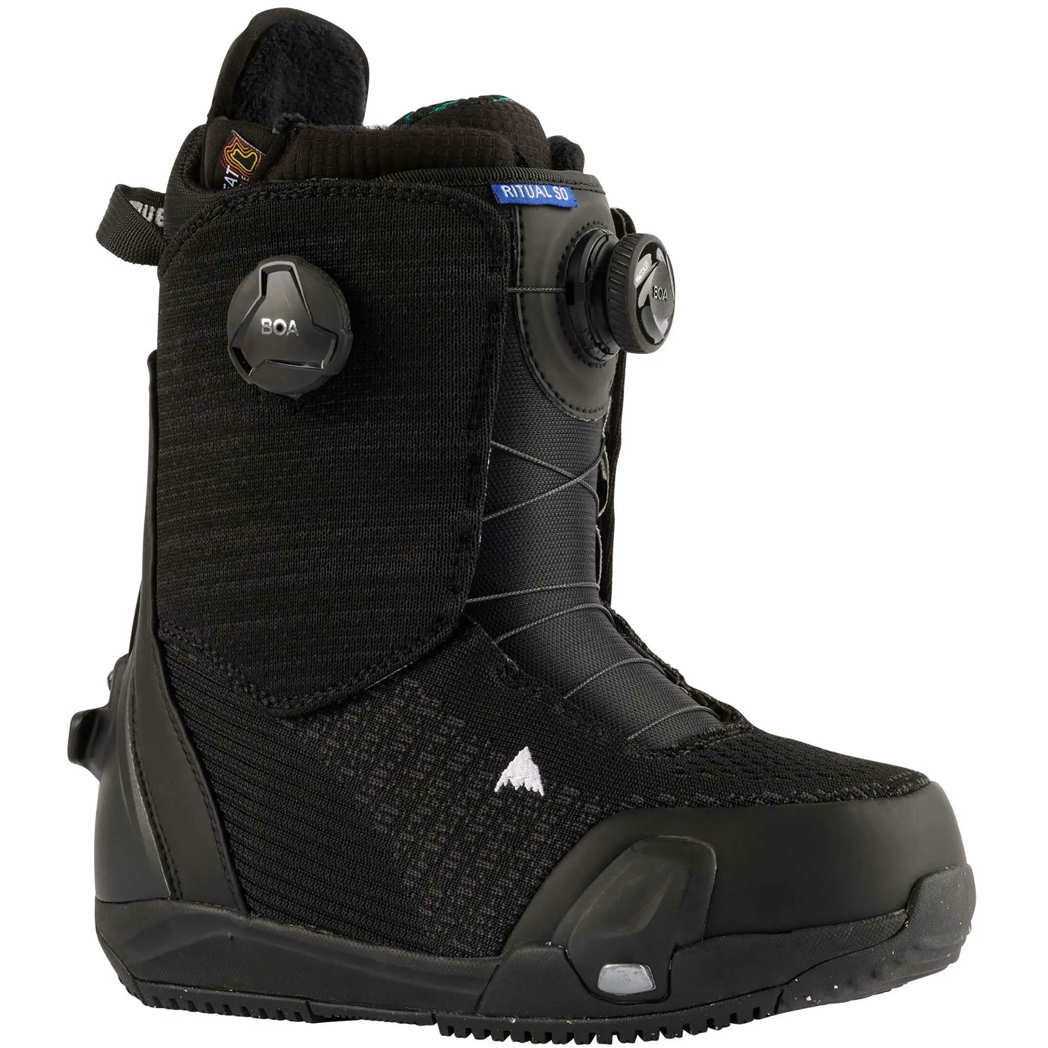 The Burton Ritual Step On’s are the lightest boots in the Burton women’s line. This flexible technical woven boot has the micro-adjustable Dual-Zone BOA system and lets you independently tension the upper and lower zones. A top-of-the-line heat moldable comfort liner that keeps your feet warm and wicks moisture away. You can tuck your pants away in the cuff on the back, this allows you an easy step-on.