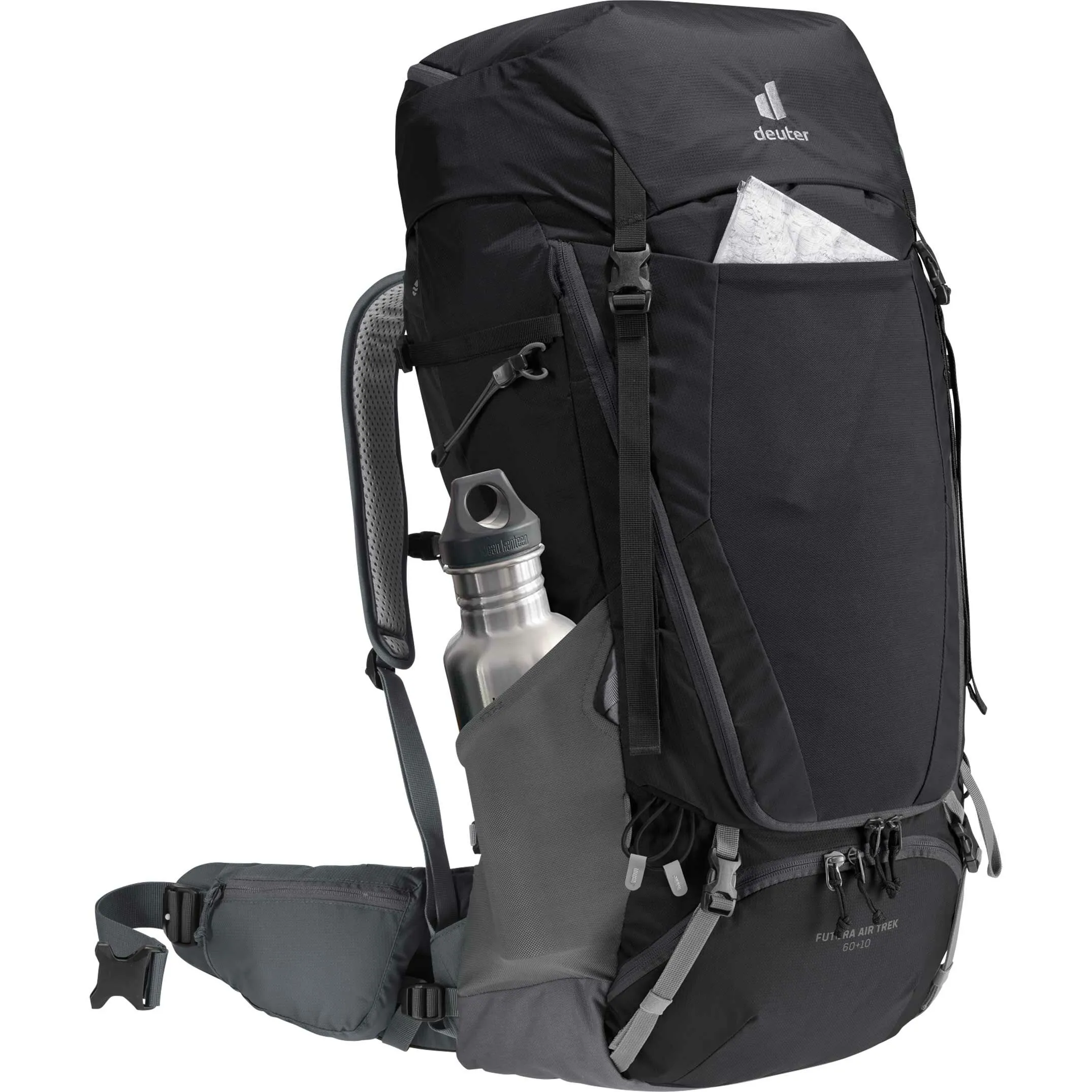 Les randonnées de longue durée sont votre truc ? Alors le Deuter Futura Air Trek 60+10, qui offre un confort maximal sur les longues randonnées, est votre compagnon idéal. Le système VariSlide permet de s’adapter à toutes les tailles. Les ailerons de hanche VariFlex ECL mobiles avec des inserts ergonomiques rembourrés assurent un port confortable. Le système dorsal en maille Aircomfort Sensic assure une ventilation optimale. Afin de vous offrir un maximum d’espace et de possibilités d’organisation pour votre équipement, il y a une poche à soufflet latérale et un couvercle réglable en hauteur (+10 L) en plus du grand accès frontal.