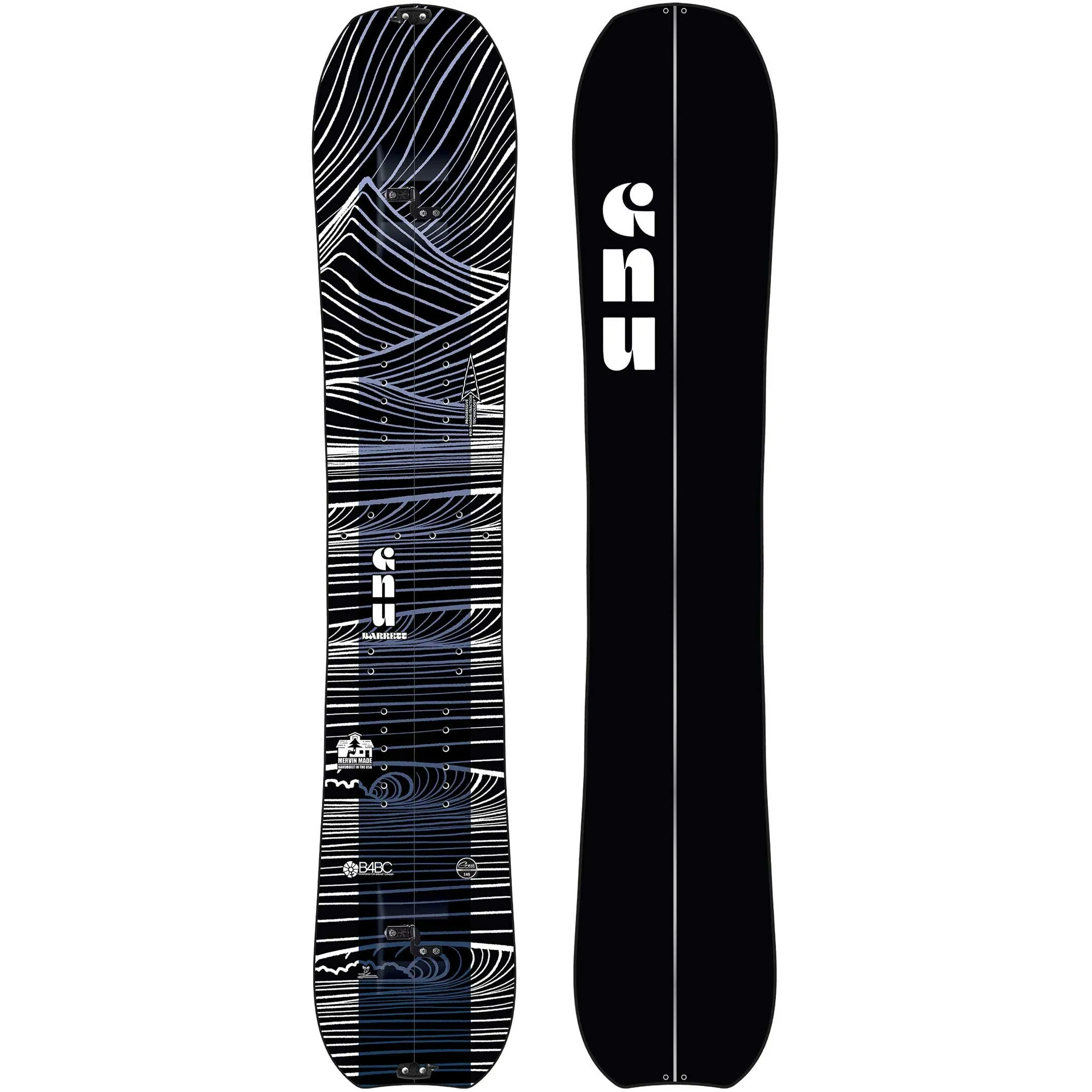 The GNU Barrett Split is the pinnacle of all-mountain design only in a split for even more versatility. 25+ years of women’s board design heritage has culminated in the Barrett. Camber for stability and control, carbon strips for light-weight snap and edge-to-edge torsional precision and of course magne-traction for grip. This board rips the backcountry, pow and chopped up terrain. The evolution of Barrett’s model is premium performance in a pretty package.