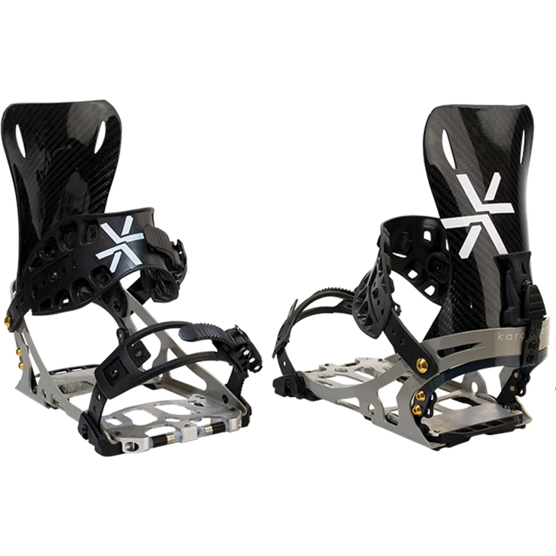 Les “Alpines” de Karakoram sont toutes équipées de la baseplate X. Contrairement à l’embase Connect, celle-ci se prolonge aux points de contact. Il en résulte une transmission extrêmement directe et un contrôle maximal. La fix possède un heelcup asymétrique. L’extérieur est plus haut pour une meilleure transmission de la puissance et une meilleure adhérence en randonnée. L’intérieur est bas, laissant plus de place pour le mouvement et une sensation “surfy”. De nos jours, toutes les fixations Karakarom ont un châssis Open, ce qui signifie que tous les matériaux dépourvus de fonction ont été retirés. Non seulement cela permet d’économiser du poids, mais cela crée également un flex plus naturel sous la fixation. Carbon Highback.