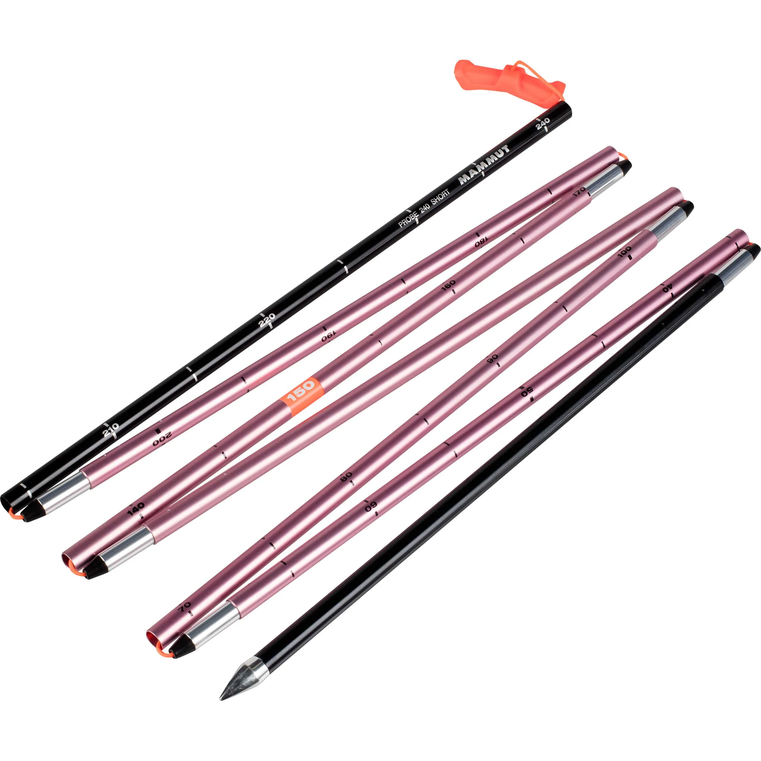 The Mammut Probe 240 Short makes searching for buried subjects easier. This is a stable, lightweight avalanche probe made of high-quality aluminum with integrated telescopic lock for quick operation. The practical probe cover contains an integrated emergency plan. Length: 38 cm packed and 240 cm extended.