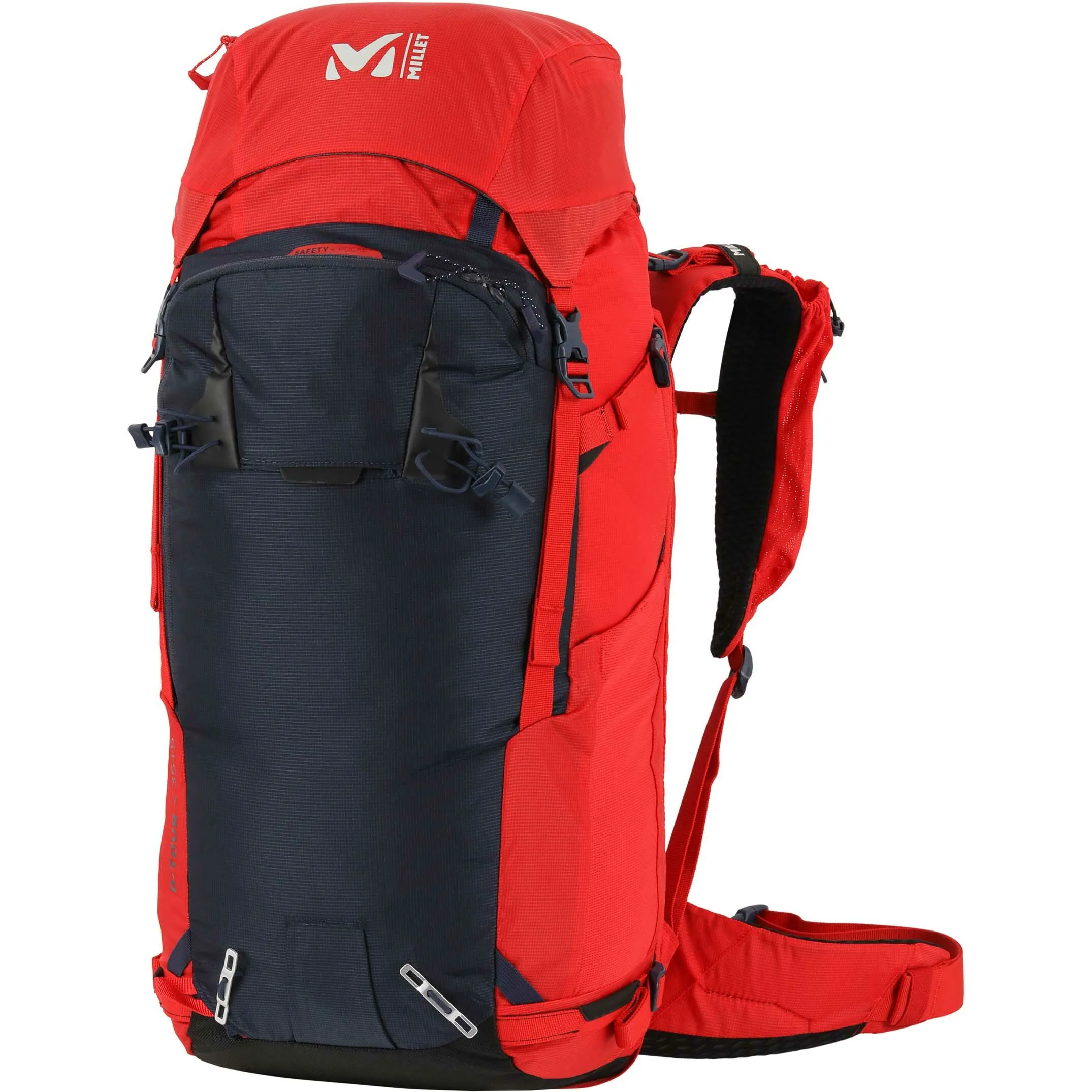 Profitez des aventures hivernales en haute altitude avec le sac à dos de ski de randonnée D-Tour 35+5 de Millet. La série de sacs D-Tour a été spécialement conçue par Millet pour accélérer la procédure de sauvetage en cas d’avalanche. Elle dispose d’une poche spéciale de sécurité dans laquelle vous pouvez ranger votre matériel de secours. Sur cette poche est indiqué le mode d’action, une caractéristique utile pour pouvoir se replier dans un événement aussi stressant. Le volume de 35 litres peut être augmenté de 5 litres supplémentaires, offrant ainsi de la place pour un sac de couchage et tout le matériel nécessaire à une expédition de plusieurs jours, avec des crochets, des sangles et des poches pour transporter vos skis, piolets, casque, cordes et autres. Enfin, le design ergonomique et entièrement réglable assure un confort optimal à la montée et à la descente.