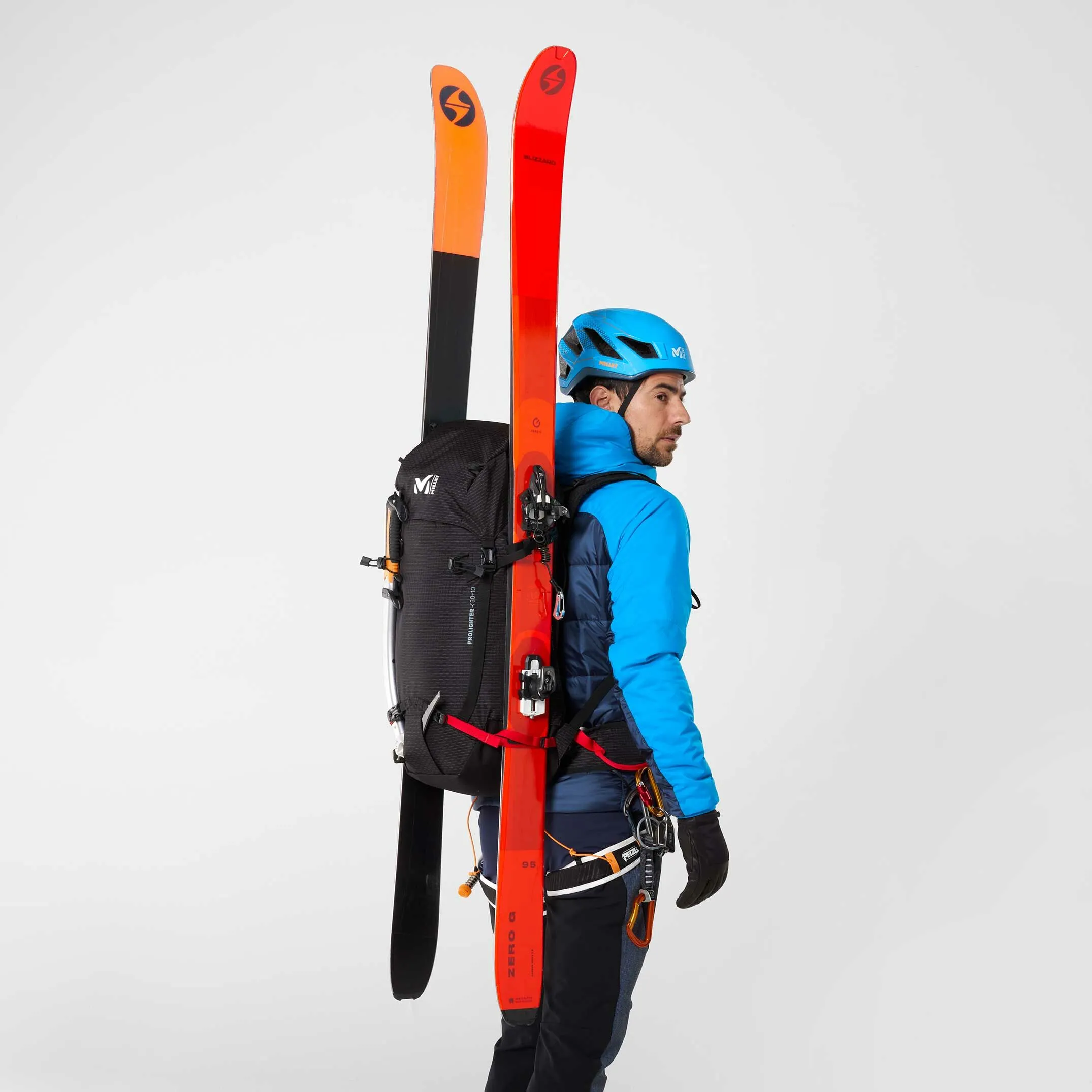 Léger et résistant, le sac à dos d’alpinisme Prolighter 30+10 de Millet est adapté aux expéditions en montagne d’un ou deux jours, quelle que soit la période de l’année. En retirant la ceinture de hanches et le couvercle, vous pouvez réduire le poids de 20% supplémentaires. Le sac à dos offre beaucoup de place pour votre corde, vos piolets, vos skis et autres équipements. De plus, le Prolighter 30 dispose d’une poignée spécifique pour le hisser, si nécessaire, dans les passages les plus difficiles de votre itinéraire afin de ne pas être gêné pendant l’escalade. Son système de portage réglable permet d’alléger la charge, tandis que son design fin permet une plus grande liberté de mouvement. Compatible avec votre système d’hydratation, c’est le sac indispensable pour les sorties au ski et les ascensions estivales.