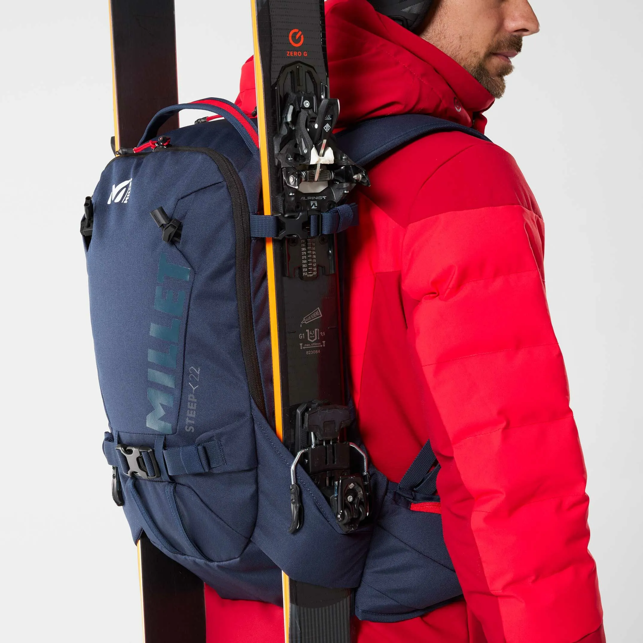 Le sac à dos Millet Steep 22 vous permet d’organiser votre matériel de manière idéale pour profiter pleinement du ski/board et de la liberté du freeride. Ce sac à dos compact est doté d’un système dorsal bien ajusté et d’une ceinture de hanches super enveloppante qui assure la stabilité pendant la conduite. Il est robuste, conçu pour une utilisation hors-piste et est facile à manipuler même avec des gants. Avec son volume de 22 litres, le Steep 22 est une valeur sûre abordable pour tous les sports de neige. Le sac à dos offre un double compartiment pour la pelle et la sonde, des options de fixation pour les skis, le snowboard, les bâtons télescopiques et le piolet, ainsi qu’un compartiment dédié pour votre vessie d’hydratation.