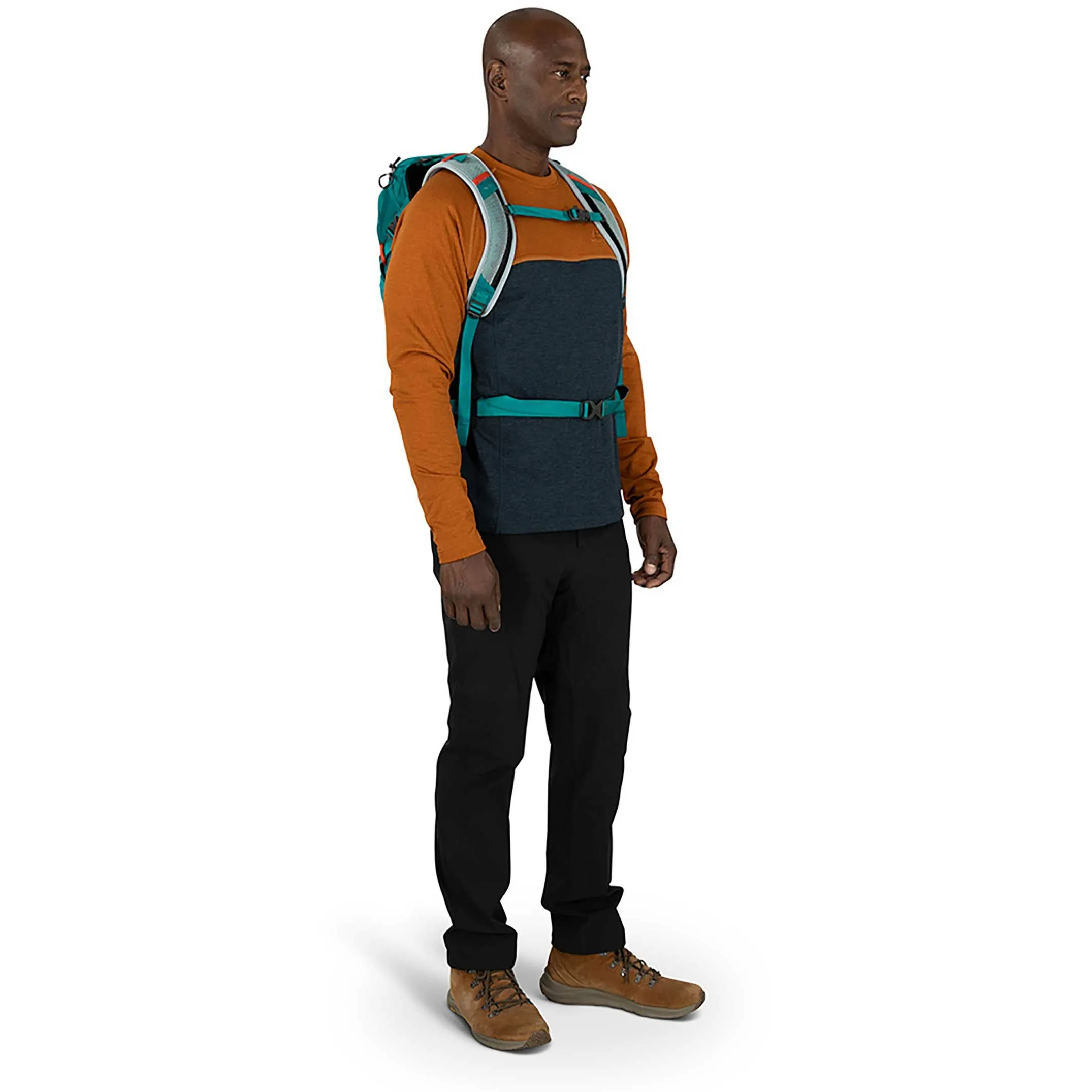 - Internal reservoir sleeve with hose port in backpanel and Osprey Hydraclip for easily hanging a reservoir