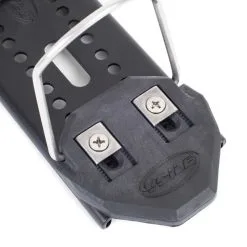 Le Système Talp de Plum utilise 2 fermetures (boucles) où vous glissez la fixation, ensuite vous la fermez et vous verrouillez le système avec le levier en alu sur le côté de la fixation. Avec le système Heel Locking vous pouvez fixer la fixation sur le talon. Toutes les fixations Plum sont faciles à monter sur tous les splitboards à inserts. Pour les splitboards avec un channel vous avez le Plum I.M.D. Nécessite un système Channel.