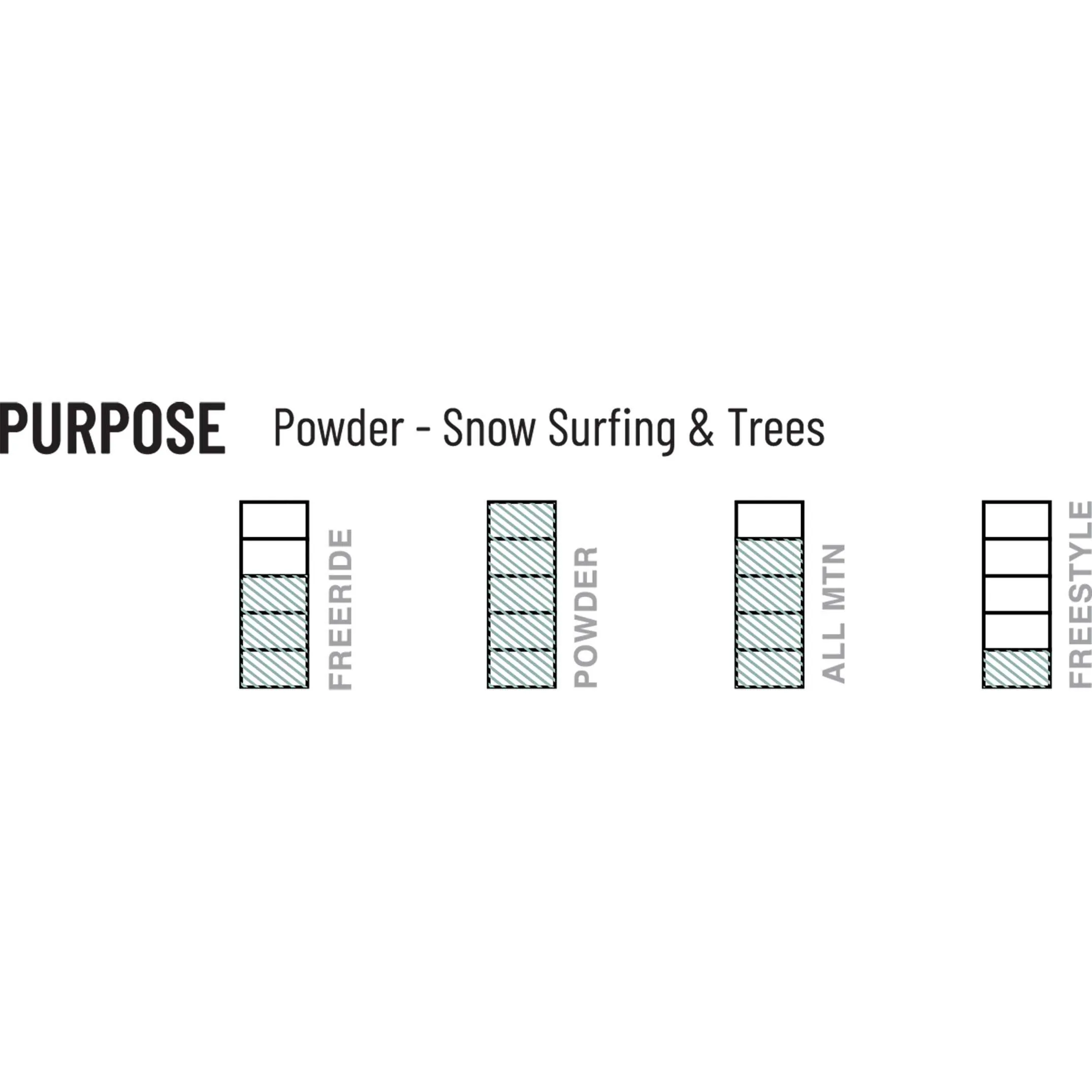 The Weston Revel is thé powder board for women. Just as pronounced shape as the Japow, but a little more refined. With its medium flex and rocker in the nose, this board is easy to turn and steer. A delight on deep days. The carbon stringers in the tail and camber between the feet provide the edge gip. Carving is therefore not excluded on this powder board. For ladies who know what they want.